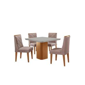 Mesa De Jantar Eloise Canto Copo 4 Cadeiras Isadora Moderna Linho Capuccino/off White/ O Conjunto de Mesa Eloise com as Cadeiras Isadora traz sofisticacao e conforto para seu lar. A mesa se destaca pela base, que agrega elegancia ao ambiente, enquanto as Cadeiras Melissa, com assentos e encostos estofados, oferecem conforto excepcional. Os bordados sofisticados e as alcas no encosto adicionam um toque de distincao e charme. Ideal para quem busca combinar estilo e funcionalidade, este conjunto transforma qualquer espaco em um ambiente acolhedor e refinado. Caracteristicas: Marca: Moderna Mobilia Modelo: Eloise/Isadora Material 100 MDF Tampo: Canto Copo Com Vidro As cadeiras sao revestidas com tecidos de alta qualidade.