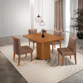 Caracteristicas: Marca: Moderna Mobilia Modelo: Eloise Material 100 MDF Tampo: Canto Copo Sem Vidro As cadeiras sao revestidas com tecidos de alta qualidade