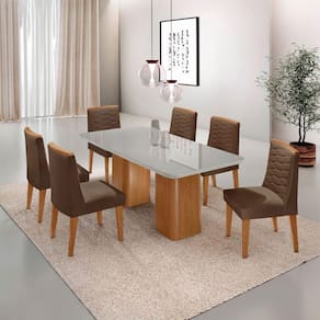 Transforme suas refeicoes em experiencias refinadas com a Mesa de Jantar Eloise, acompanhada com 6 Cadeiras Eloise.