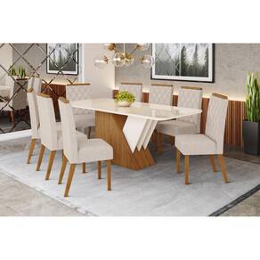 Mesa de Jantar 08 Lugares Epic 2.000 mm Tampo retangular em MDF 25 mm com sobreposição de vidro 4 mm, que garante mais resistência e durabilidade à peça. Tampo canto arredondado com vidro. Cadeira Nina: Densidade da espuma do Assento: D23. Densidade da espuma do Encosto: D15. Medidas; Mesa: A: 800 x L: 2000 x P: 900 mm Cadeira: A: 995 x L: 440 x P: 590 mm Grantia: 90 dias. Recomendação de limpeza: Usa pano levemente umedecido com água, seguido por pano seco. Evitar exposição ao sol, para aumentar a durabilidade da cor do tecido. Não usar escova e/ou produtos abrasivos. Montagem: Montagem, desmontagem e outras instalações serão de responsabilidade do cliente. Não nos responsabilizamos, no ato da entrega, por subir escadas/elevadores ou pelo transporte por guincho em apartamentos. Eventuais despesas são de responsabilidade do comprador; Observações importantes: A tonalidade da cor do produto pode variar de acordo com a sua tela, a iluminação do ambiente ou sua percepção visual Lembrando que são fotos ilustrativas tratadas em estúdios podendo haver pequena diferença nas cores A montagem será de responsabilidade do comprador; Não nos responsabilizamos, no ato da entrega, por subir escadas/elevadores ou transporte por guincho em apartamentos. Eventuais despesas são de responsabilidade do comprador; Confira as dimensões deste produto e certifique-se de que passará normalmente por supostos elevadores, portas, escadas e/ou corredores de sua residência; Para mais informações, acesse nossa Central de Atendimento. Marca: LM DECOR
