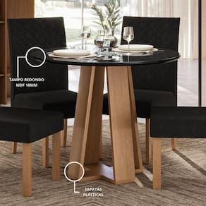 Base em MDP 25 mm na cor mel Tampo redondo em MDF 18 mm com vidro sobreposto Design moderno e acabamento refinado Ideal para até 4 lugares