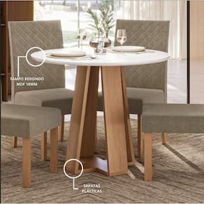 A Mesa Estilo Mel é ideal para quem busca um móvel funcional, elegante e com excelente aproveitamento de espaço. Com 90 cm de diâmetro, seu formato redondo é perfeito para cozinhas, salas de jantar compactas ou ambientes integrados, acomodando até 4 pessoas com conforto. Produzida em MDP e MDF, sua base robusta de 25 mm na cor mel oferece resistência e um visual moderno. O tampo em MDF de 18 mm com acabamento laqueado em brilho proporciona sofisticação e praticidade, sendo fácil de limpar e ideal para o uso diário.