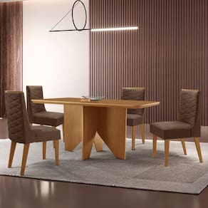 Mesa de Jantar Evora 120cm MDF Canto copo e 4 Cadeiras Safira