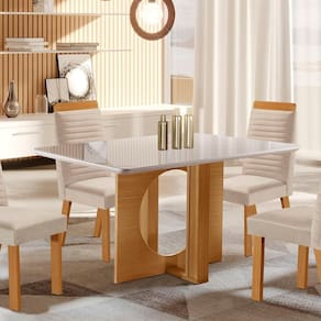 Seu tampo retangular com acabamento refinado proporciona charme e funcionalidade, ideal para refeições em família ou encontros com amigos.