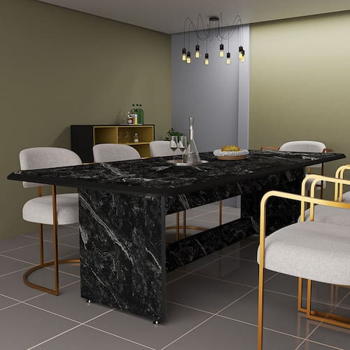 O tampo amplo proporciona espaço de sobra para reunir a família e amigos, tornando cada refeição um momento especial. Ideal para salas de jantar, cozinhas espaçosas e áreas gourmet, é um móvel que une beleza, funcionalidade e qualidade. Com acabamento marmorizado de alto padrão, ela oferece um visual sofisticado e imponente, ideal para receber familiares e amigos com estilo.