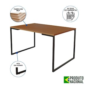 Mesa de Jantar Industrial Base Ferro Preto Tampo 137x90 Canela - Marrom