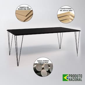 Mesa de jantar industrial retangular clips preta 135x75 de ferro pretoA mesa clips é a escolha ideal para deixar sua casa muito mais bonita e renovada. Essa mesa tem em sua estrutura materiais de altíssima qualidade, que proporciona muito mais resistência, mesmo com o passar dos anos. Ela tem formato retangular e possui espaço para 6 lugares, o que é ideal para um jantar em família. A mesa é versátil e combina com vários tipos de decoração, o que dá mais praticidade em casa.CaracteristicasTipo: mesaModelo: clipsCor: pretoBase: ferro na cor pretaDimensões do produtoAltura: 76cmLargura: 135cmProfundidade: 75cm Obs: imagens meramente ilustrativaMesa de Jantar Industrial Retangular Clips Preta 135x75 de Ferro Preto