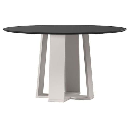 Mesa de Jantar Isabela 135x135 cm com Vidro Off White Preto New Ceval