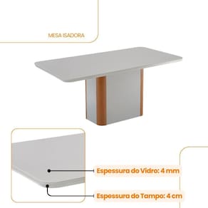 A mesa Isadora, com tampo de Vidro e canto copo, garantem seguranca e durabilidade, enquanto sua base deslumbrante, com detalhe especial na sua angulacao arredondada naturalle, transforma este conjunto em uma verdadeira peca de destaque na sua sala de jantar!