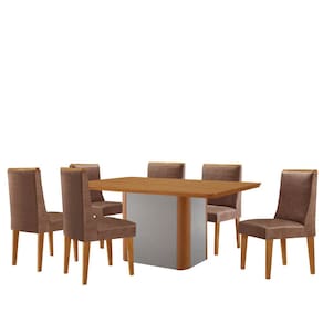 Mesa de Jantar Isadora 180cm Tampo MDF Laminado com 6 Cadeiras Lisboa - Marrom