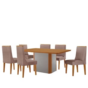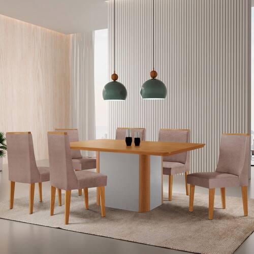 Mesa de Jantar Isadora 180cm Tampo MDF Laminado com 6 Cadeiras Lisboa - Rosê