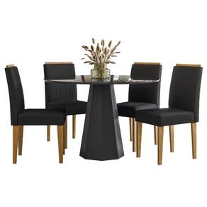 Mesa de jantar Isis 120x120 cm com Vidro Preto e 4 Cadeiras Ana Ype Veludo Preto New Ceval