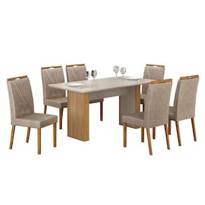Mesa de Jantar Júlia 160x80cm Cinamomo Off White com 6 Cadeiras Lara Linho Bege - Valdemóveis