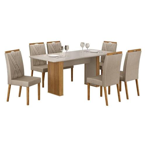 Mesa de Jantar Júlia 180x90cm Cinamomo Off White com 6 Cadeiras Lara Veludo Bege - Valdemóveis