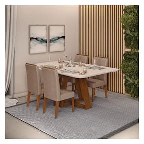 Mesa de Jantar Kiara Freijó Off White com 4 Cadeiras Yasmin Freijó Veludo Kraft - Dj Móveis
