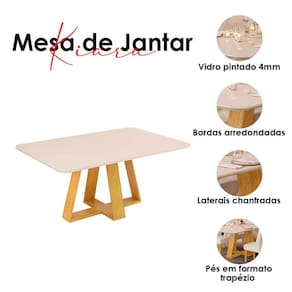 Mesa de Jantar Kiara Tampo Chanfrado Curvo Cedro Off White – DJ Móveis