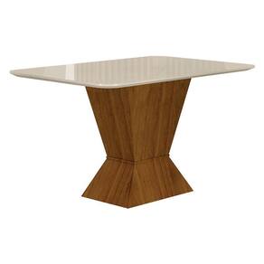 Mesa de Jantar Larissa 120x80 Freijó Off White com 6 Cadeiras MDF Freijó Linho Palha - Leifer Móveis