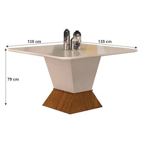 Mesa de Jantar Larissa 135x135 Off White Freijó com 8 Cadeiras MDF Freijó Linho Palha - Leifer Móveis