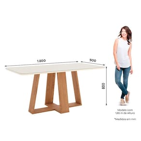 Mesa de Jantar Lins 180 cm Ambiente Canto Arredondado com Vidro Nature Off White – Henn