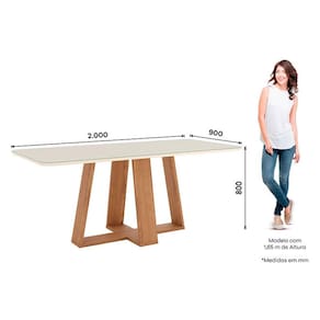 Mesa de Jantar Lins 200 cm Ambiente Canto Arredondado com Vidro Nature Off White – Henn
