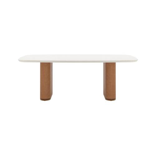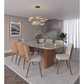 A Mesa de Jantar Lintz 220 cm combina elegância e funcionalidade. Seu design moderno com pés revestidos em PU caramelo e tampo off white com vidro pintado oferece durabilidade e estilo. Com capacidade para acomodar até 8 pessoas, ela é ideal para jantares e reuniões familiares, proporcionando conforto e sofisticação.