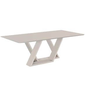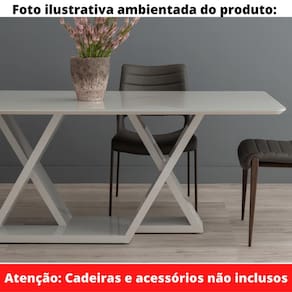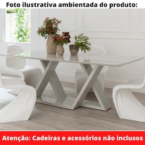Mesa de Jantar Livia Flora 180 cm Retangular Borda Arredondada de Madeira com Vidro Colado Cor Off White