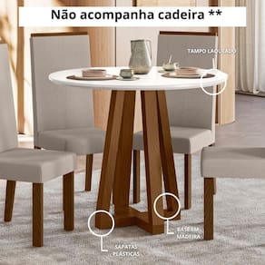 A Mesa Livia Piccola Redonda 90 cm é perfeita para quem busca um móvel compacto, sofisticado e com responsabilidade ambiental. Com estrutura em madeira 100% de reflorestamento e tampo em MDF 18 mm com acabamento laqueado, ela oferece resistência, beleza e praticidade para o dia a dia.