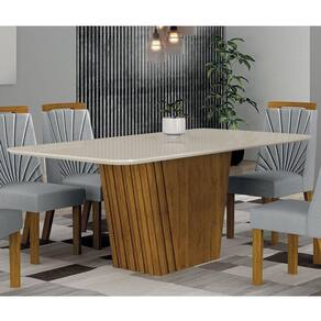 A Mesa de Jantar Liz possui a elegância e o charme que sua sala de jantar precisa! Conta com tampo com vidro serigrafado, canto copo e base em MDF com detalhes ripados. O móvel perfeito para refeições e momentos especiais com familiares e amigos. Confira mais detalhes e aproveite!