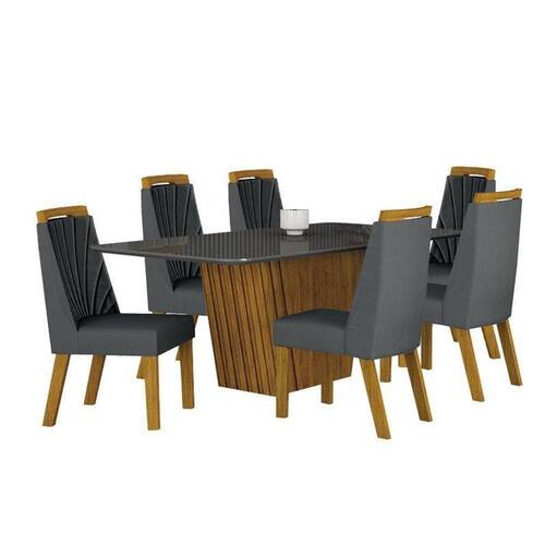 Mesa de Jantar Liz 180x90 Freijó Chumbo com 6 Cadeiras Freijó Joli Chumbo Leifer Móveis