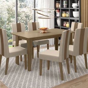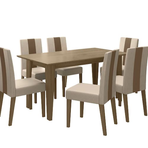 Características: Marca: Poliman Moveis Modelo: Liz Material: MDP Material da Cadeira: MDP Densidade do Assento: D20 Quantidade de Pés: 04 Quantidade de Cadeiras: 06
