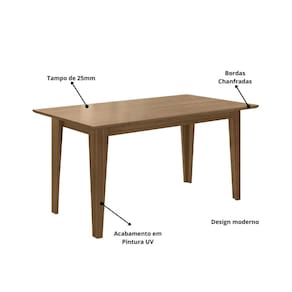 Possui base com 4 pés, tampo retangular 160x90cm em MDP 25mm com bordas chanfradas que valorizam o produto deixando o modelo ainda mais requintado.
