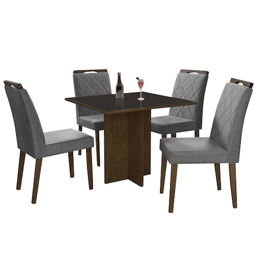Mesa de Jantar Los Angeles 120x80cm em Linho com 4 Cadeiras Minas Plac Com um design moderno e elegante, a Mesa de Jantar Los Angeles 120x80cm em Linho com 4 Cadeiras Minas Plac é perfeita para quem busca um ambiente sofisticado e acolhedor. A combinação de cores neutras e o acabamento impecável dos móveis garantem um toque de requinte ao seu espaço, seja ele a sala de jantar, a cozinha ou até mesmo um espaço gourmet. Além de sua beleza, esse conjunto se destaca pela sua funcionalidade e praticidade. A mesa possui um tamanho ideal para acomodar confortavelmente até 4 pessoas, proporcionando momentos agradáveis e descontraídos com amigos e familiares. As cadeiras, por sua vez, são extremamente confortáveis e possuem um design que se encaixa perfeitamente à mesa, otimizando o espaço e garantindo o bem-estar de todos.\nMedidas da Mesa\nAltura 78 cm\nComprimento 80 cm\nLargura 120 cm\nMedidas das Cadeiras\nAltura 96,5 cm\nComprimento 44 cm\nLargura 56 cm\nCaracterísticas\nModelo Mesa de Jantar Los Angeles 120x80cm em Linho\nTipo do produto Mesa de Jantar\nAmbiente Sala de Estar\nMaterial da Estrutura MDF\nTamanho Solteiro\nPossui Cadeira 04\nPossui Sapatas Sim\nPossui Vidro Sim\nTipo de Pintura UltraVioleta\nTipo de Tampo MDF / Vidro\nTipo de Conforto das Cadeiras Espuma D23\nTipo de Tecido do Revestimento das Cadeiras Tecido Linho\nGarantia 3 meses\nInformações Importantes\nObjetos decorativos que porventura apareçam na foto, não acompanham o produto. Não nos responsabilizamos pela montagem/instalação dos produtos.\nMontagens, desmontagens e instalações são responsabilidades do cliente. Indicamos que contrate uma empresa de montagem ou um montador de sua confiança.\nAlém disso, favor verificar se os pés e acessórios estão dentro do forro inferior do produto. Em suma, todas as informações divulgadas sobre o produto são de responsabilidade do Fabricante.\nAs cores do produto podem variar de acordo com o seu monitor, a iluminação do ambiente em que você está e até mesmo a sua percepção visual. Além da cor, pequenos detalhes e acabamentos podem não ficar evidentes na foto, por isso as imagens são meramente ilustrativas.