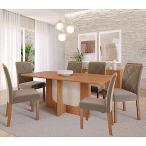 Mesa de Jantar Louise 180x90 com Tampo em MDF e 6 Cadeiras Fernanda Wood - Cimol Móveis