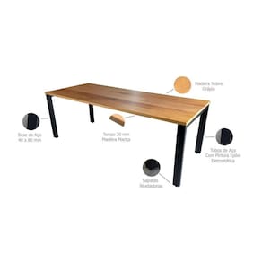 A Mesa de jantar da Benoarte é ideal para ambientes como áreas de lazer, de churrasco. Possui tampo em madeira maciça, e a sua base é feita de pés metálicos finalizados com pintura epóxi eletrostática, garantindo alta durabilidade. Perfeito para compor decorações contemporâneas como o estilo industrial, deixará a sua casa mais moderna sem perder a sofisticação.