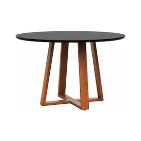 - Materiais: Base em madeira maciça tingida na cor amêndoa com tampo laqueado ou laminado