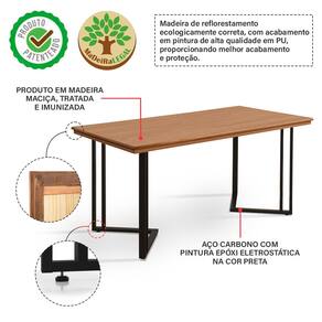 Características: Modelo: Michigan Tipo: Mesa de Jantar Material do Tampo: Madeira Maciça Material da Base: Ferro Cor do Tampo: Castanho Cor da Base: Preta Design moderno e funcional