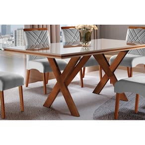 Mesa de Jantar Moderna - Nobre-2,20x1,10m - Requinte Salas A mesa de jantar Nobre tem um design individualizado, que une modernidade, beleza e sofisticação, produzida com os materiais da mais alta qualidade para atender bem os seus usuários. Ela tem a estrutura da base em madeira maciça Tauari, ecologicamente correta, o tampo em MDF 45mm de espessura, vidro de 3mm sobreposto, e quinas canto tick que traz uma modernidade a mais. Um escândalo de elegância, compre logo a sua e curta os momentos em família! Faz parte do anúncio: 1 Mesa de Jantar Moderna Base Madeira Maciça - Nobre - Requinte Salas Obs: Objetos decorativos não inclusos. Particularidades da Mesa de Jantar Características: - Base em madeira maciça Tauari seca em estufa e imunizada - Madeira ecologicamente correta - Tampo em MDF com 45mm de espessura - Vidro 3mm - Tampo retangular com quinas retas Dimensões da Mesa: Altura: 76 centímetros Largura: 2,20 metros Profundidade: 1,10 metro Informações Importantes: -Produtos podem apresentar diferenças de tonalidades entre a foto na tela e o produto real, devido a calibração de cor de tela. -Limpar com flanela ou pano macio. Não utilizar álcool. Não utilizar produtos abrasivos ou corrosivos -Nós prezamos pela qualidade da entrega em primeiro lugar, trabalhamos com transportadoras altamente selecionadas e os melhores materiais de embalagem. -Todos os itens já vão embalados -A mesa vai semi montada. Não necessita da montagem de um profissional, ficando ao critério do cliente. -Não responsabilizamos pela montagem. -Certifique-se de que o produto caiba em elevadores e vãos de escadas, não fazemos içamentos ou desmontagens de produtos. Quaisquer despesas deste tipo ficam a cargo do cliente -Garantia de 3 meses contra defeitos de fabricação. Marca: Requinte Salas