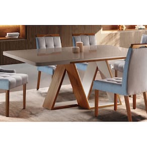 Mesa de Jantar Moderna - Sophia-2,0x1,0m - Requinte Salas A mesa de jantar Sophia tem um estilo moderno e elegante. Esse modelo tem a base mais robusta com detalhes em lacca que atualmente tem agradado muitos consumidores. Possui a base em MDF laminado, com folhas de madeira maciça Marfim e Cinamomo, o tampo em MDF com 40mm de espessura e vidro sobreposto de 3mm, quinas arredondadas o que ajuda a diminuir os impactos físicos. Não perca tempo e compre logo a sua mesa de jantar, temos opções de tamanhos e cores de tampo para você escolher de acordo com seu espaço e sua decoração. Aproveite! Faz parte do anúncio: 1 Mesa de Jantar Sophia Obs: Objetos de decoração não inclusos. Particularidades da Mesa de Jantar Características: - Base em MDF, lâmina de Cinamomo e Marfim - Madeira ecologicamente correta - Tampo em MDF com 40mm de espessura - Vidro 3mm - Tampo retangular com quinas arredondadas Dimensões da Mesa: Altura: 76 centímetros Largura: 2,0 metros Profundidade: 1,0 metro Informações Importantes: -Produtos podem apresentar diferenças de tonalidades entre a foto na tela e o produto real, devido a calibração de cor de tela. -Limpar com flanela ou pano macio. Não utilizar álcool. Não utilizar produtos abrasivos ou corrosivos -Nós prezamos pela qualidade da entrega em primeiro lugar, trabalhamos com transportadoras altamente selecionadas e os melhores materiais de embalagem. -Todos os itens já vão embalados -A mesa vai semi montada. Não necessita da montagem de um profissional, ficando ao critério do cliente. -Não responsabilizamos pela montagem. -Certifique-se de que o produto caiba em elevadores e vãos de escadas, não fazemos içamentos ou desmontagens de produtos. Quaisquer despesas deste tipo ficam a cargo do cliente -Garantia de 3 meses contra defeitos de fabricação. Marca: Requinte Salas