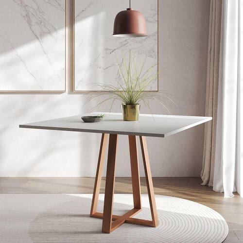Mesa De Jantar Mônaco 110cm Tampo Branco Pés Cobre - Cor: Branco