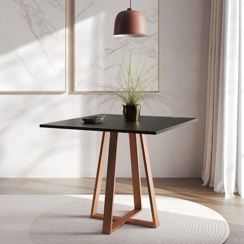 IMAGENS MERAMENTE ILUSTRATIVAS REALIZADO EDIÇÃO, PODENDO HAVER UMA PEQUENA VARIAÇÃO DE COR DEPENDENDO DE CADA TELA OU MONITOR.Mesa De Jantar MÃnaco 90cm Preta Base Cobre