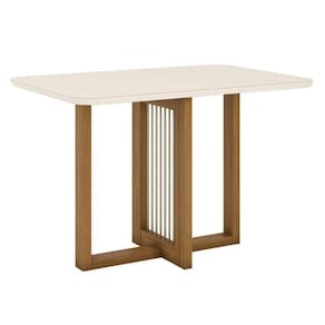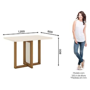 Mesa de Jantar Natalí 120 cm Canto Arredondado com Vidro Nature Off White - Henn
