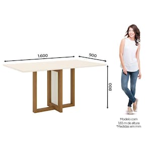 Mesa de Jantar Natalí 160 cm Canto Reto sem Vidro Nature Off White - Henn