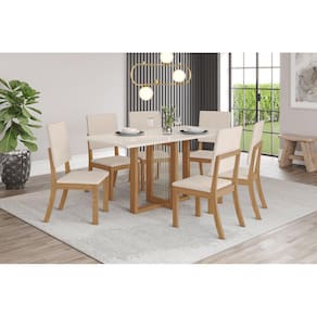 Mesa de Jantar 06 Lugares Natalí 1.600mm   (NÃO ACOMAPNHA AS CADEIRAS)   Medidas: A: 800 x L: 1600 x P: 800 mm   Grantia: 90 dias.   Recomendação de limpeza: Usa pano levemente umedecido com água, seguido por pano seco. Evitar exposição ao sol, para aumentar a durabilidade da cor do tecido. Não usar escova e/ou produtos abrasivos.   Montagem: Montagem, desmontagem e outras instalações serão de responsabilidade do cliente. Não nos responsabilizamos, no ato da entrega, por subir escadas/elevadores ou pelo transporte por guincho em apartamentos. Eventuais despesas são de responsabilidade do comprador;    Observações importantes: A tonalidade da cor do produto pode variar de acordo com a sua tela, a iluminação do ambiente ou sua percepção visual Lembrando que são fotos ilustrativas tratadas em estúdios podendo haver pequena diferença nas cores A montagem será de responsabilidade do comprador; Não nos responsabilizamos, no ato da entrega, por subir escadas/elevadores ou transporte por guincho em apartamentos. Eventuais despesas são de responsabilidade do comprador; Confira as dimensões deste produto e certifique-se de que passará normalmente por supostos elevadores, portas, escadas e/ou corredores de sua residência; Para mais informações, acesse nossa Central de Atendimento.