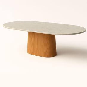 Estrutura em Madeira Laminada com acabamento Freijó, contra tampo em MDF 18 mm e um tampo DE 198x122 cm Mármore Branco Extra.