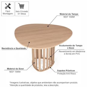 Beleza Durável em MDF: A mesa é construída 100% em MDF de 15 mm, garantindo resistência e estabilidade inigualáveis. O material é de alta qualidade, adaptando-se a diversos estilos, do moderno ao clássico.