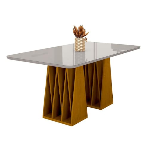 MDF 25mm e vidro 3mmA Mesa Orquestra 6 Lugares unem elegância e sofisticação para transformar sua sala de jantar.
