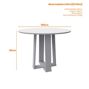 Mesa de Jantar para 4 Lugares 1,00m Tampo Redondo em Mdf Isabela Ypê - New Ceval