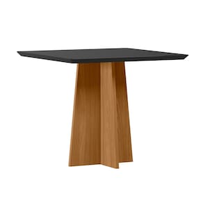 Mesa de Jantar para 4 Lugares 90cm Tampo Quadrado com Vidro Anitta Ypê/Preto - New Ceval