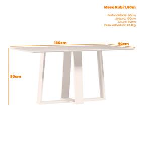 Mesa de Jantar para 6 Lugares 1,60m Tampo Mdf com Vidro Rubi Off White - New Ceval