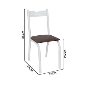 Dimensões das cadeiras:Largura 37 cm, Profundidade 49 cm, Altura 85 cm.Distância do assento ao chão:45 cm
